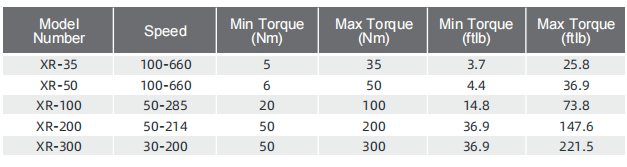 Max Torque = 50 to 350Nm (36.8 ft-lbf to 258 ft-lbf)