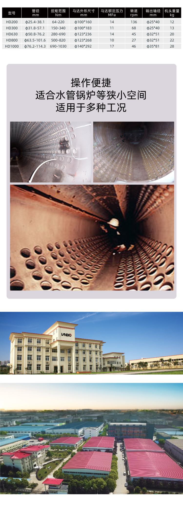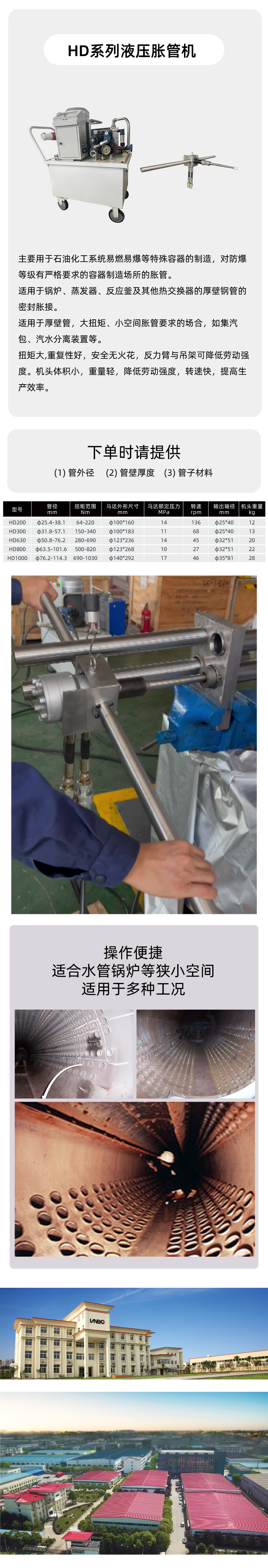 主要用于石油化工系统易燃易爆等特殊容器的制造,对防爆等级有严格要求的容器制造场所的胀管。